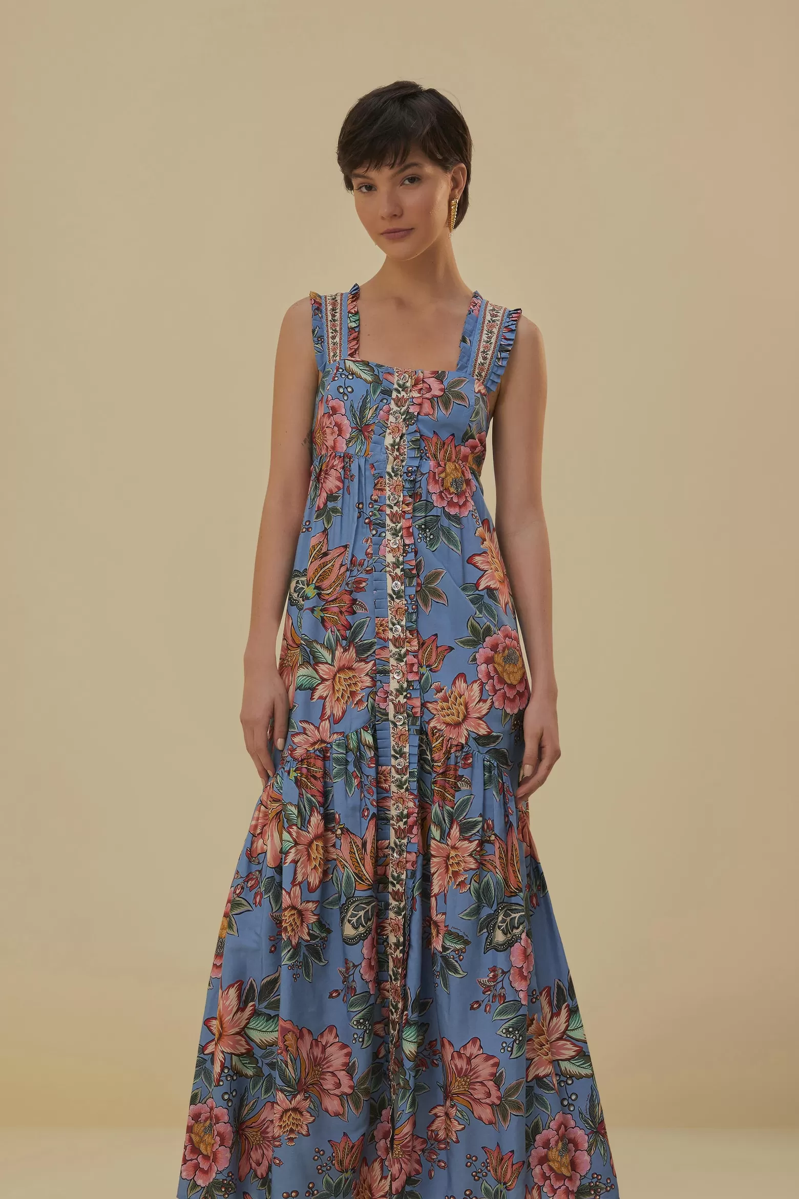 Hot FARM Rio BLUE WONDERFUL BOUQUET SLEEVELESS MAXI DRESS